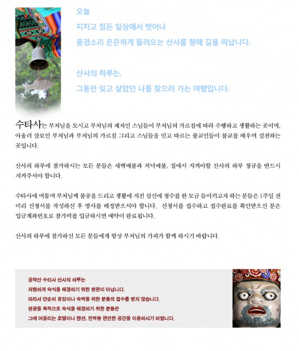 공작산 수타사 - 3 페이지 정보 작성자 정암사 작성일12-12-23 09:42 조회10,534회 댓글0건 본문 수타사 템플스테이http://t071.danah.kr/bbs/board.php?bo_table=04_1 댓글목록 등록된 댓글이 없습니다. 이전글 다음글 목록