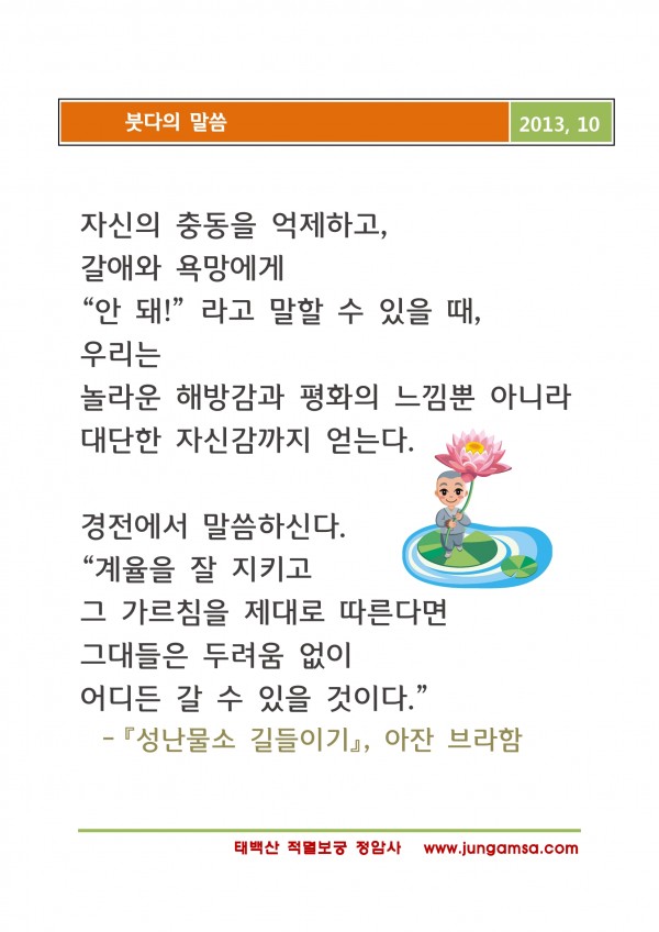 _()_ 붓다의 말씀 2013년 10월 - 두려움 없이 가기