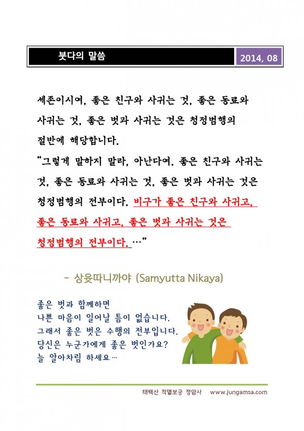 _()_ 붓다의 말씀 2014년 08월 - 좋은 벗과 함께하면.. 페이지 정보 작성자 정암사 작성일14-08-01 04:08 조회12,771회 댓글0건 본문 .. 댓글목록 등록된 댓글이 없습니다. 이전글 다음글 목록
