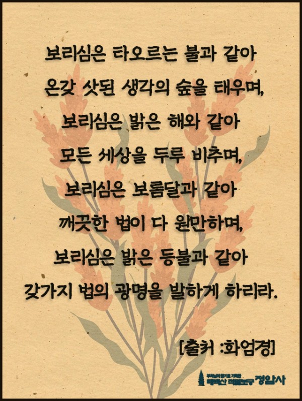 _()_ 붓다의 말씀 2023년 12월 - 보리심은 타오르는 불과 같아 페이지 정보 작성자 정암사 작성일23-11-27 09:19 조회7,409회 댓글0건 본문 . 댓글목록 등록된 댓글이 없습니다. 이전글 다음글 목록