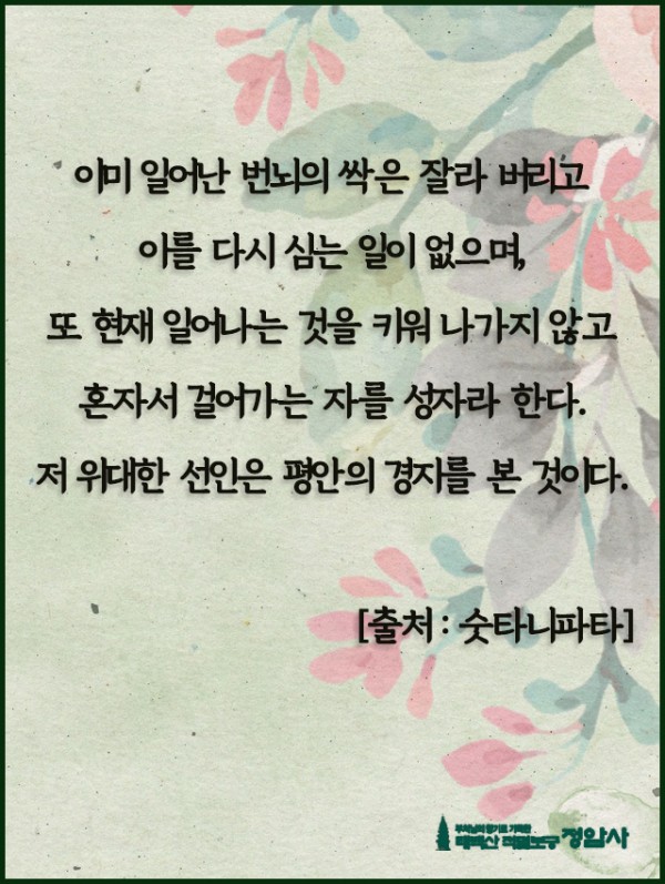 _()_ 붓다의 말씀 2024년 3월 - 이미 일어난 번외의 싹은 잘라 버리고 페이지 정보 작성자 정암사 작성일24-02-28 09:29 조회7,340회 댓글0건 본문 . 댓글목록 등록된 댓글이 없습니다. 이전글 다음글 목록