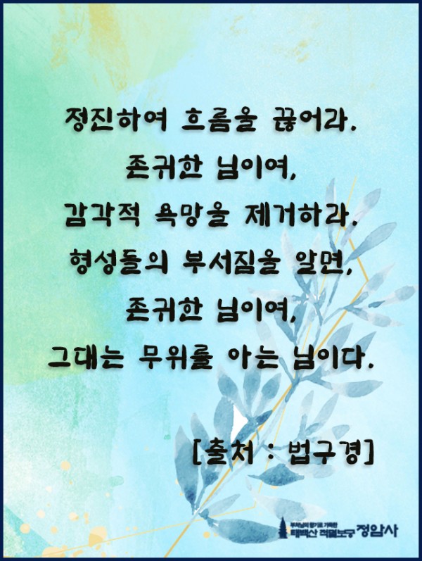 _()_ 붓다의 말씀 2024년 7월 - 정진하여 흐름을 끊어라 페이지 정보 작성자 정암사 작성일24-06-30 18:48 조회6,117회 댓글0건 본문 . 댓글목록 등록된 댓글이 없습니다. 이전글 다음글 목록