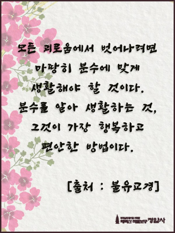 _()_ 붓다의 말씀 2024년 8월 - 모든 괴로움에서 벗어나려면 페이지 정보 작성자 정암사 작성일24-07-31 14:01 조회5,951회 댓글0건 본문 . 댓글목록 등록된 댓글이 없습니다. 이전글 다음글 목록