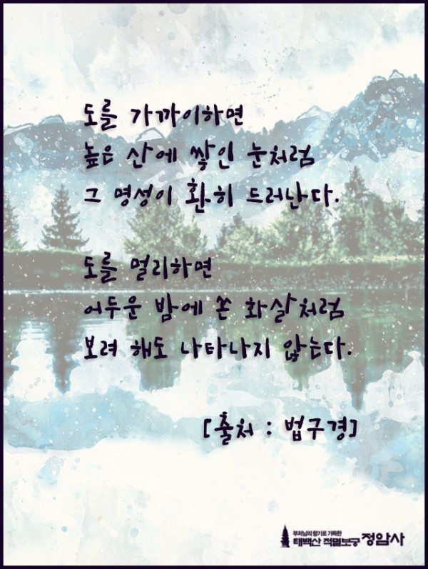 _()_ 붓다의 말씀 2022년 12월 - 도를 가까이하면 높은 산에 쌓인 눈처럼 페이지 정보 작성자 정암사 작성일22-11-29 13:05 조회7,680회 댓글0건 본문 . 댓글목록 등록된 댓글이 없습니다. 이전글 다음글 목록