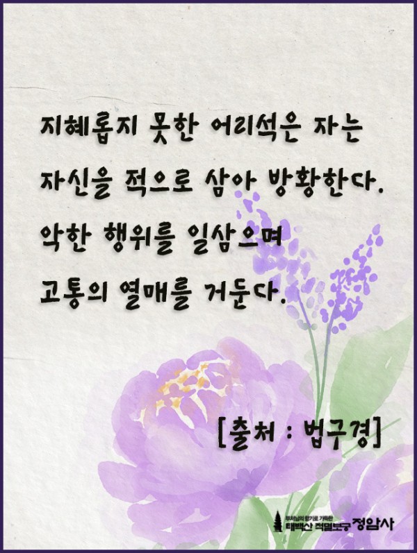 _()_ 붓다의 말씀 2023년 3월 - 지혜롭지 못한 어리석은 자 페이지 정보 작성자 정암사 작성일23-02-24 13:57 조회7,521회 댓글0건 본문 . 댓글목록 등록된 댓글이 없습니다. 이전글 다음글 목록