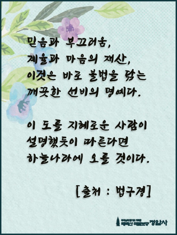 _()_ 붓다의 말씀 2023년 5월 - 믿음과 부끄러움, 계율과 마음의 재산 페이지 정보 작성자 정암사 작성일23-04-26 12:28 조회7,395회 댓글0건 본문 . 댓글목록 등록된 댓글이 없습니다. 이전글 다음글 목록