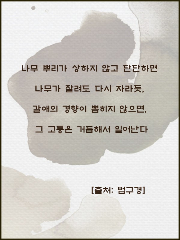 _()_ 붓다의 말씀 2018年 11月 - 나무 뿌리가 상하지 않고 단단하면 페이지 정보 작성자 정암사 작성일18-10-29 14:01 조회10,786회 댓글0건 본문 댓글목록 등록된 댓글이 없습니다. 이전글 다음글 목록