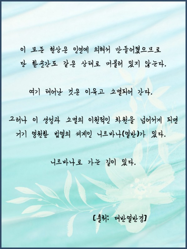 _()_ 붓다의 말씀 2018年 8月 - 이 모든 현상은 인연에 의해서 만들어졌으므로 페이지 정보 작성자 정암사 작성일18-07-25 15:34 조회11,097회 댓글0건 본문 댓글목록 등록된 댓글이 없습니다. 이전글 다음글 목록