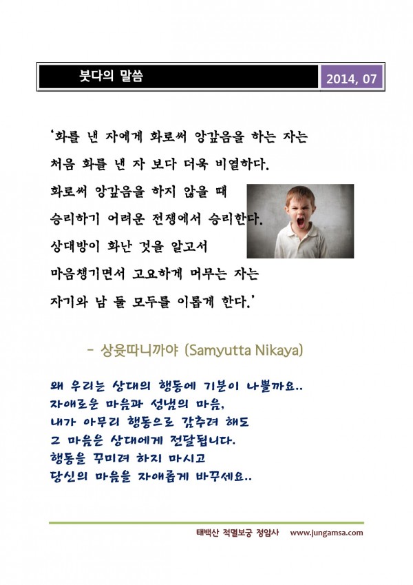_()_ 붓다의 말씀 2014년 07월 - 자기와 남 둘 모두를 이롭게 하기 페이지 정보 작성자 정암사 작성일14-07-05 15:31 조회11,617회 댓글0건 본문 ... 댓글목록 등록된 댓글이 없습니다. 이전글 다음글 목록