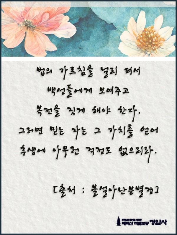 _()_ 붓다의 말씀 2025년 6월 - 법의 가르침을 널리 펴서 페이지 정보 작성자 정암사 작성일25-05-27 22:09 조회6,415회 댓글0건 본문 . 댓글목록 등록된 댓글이 없습니다. 이전글 다음글 목록