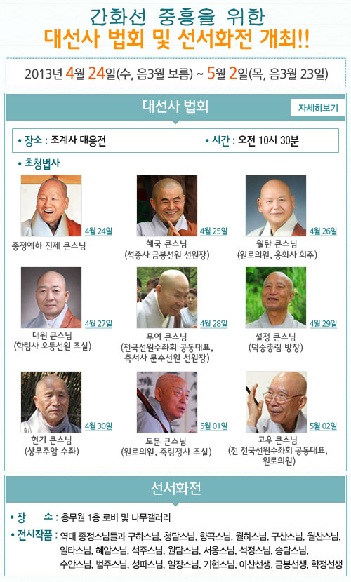 간화선 중흥을 위한 대선사 법회 페이지 정보 작성자 정암사 작성일13-03-22 21:06 조회10,980회 댓글0건 본문 자세한 내용은 선원수좌복지회 홈페이지를 참고하세요 http://seonsujoa.org/ 댓글목록 등록된 댓글이 없습니다. 이전글 다음글 목록