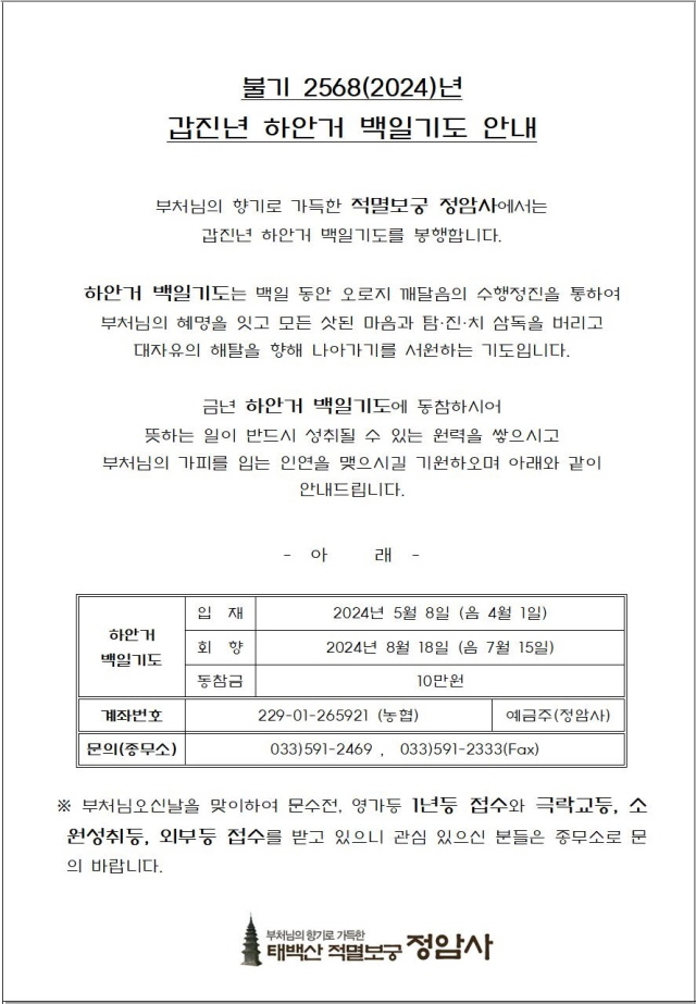 갑진년 하안거 백일기도 봉행 > 공지사항