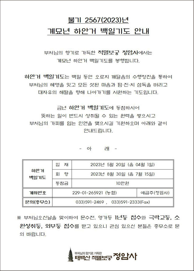 계묘년 하안거 백일기도 봉행 > 공지사항