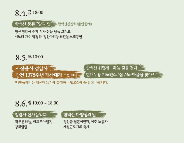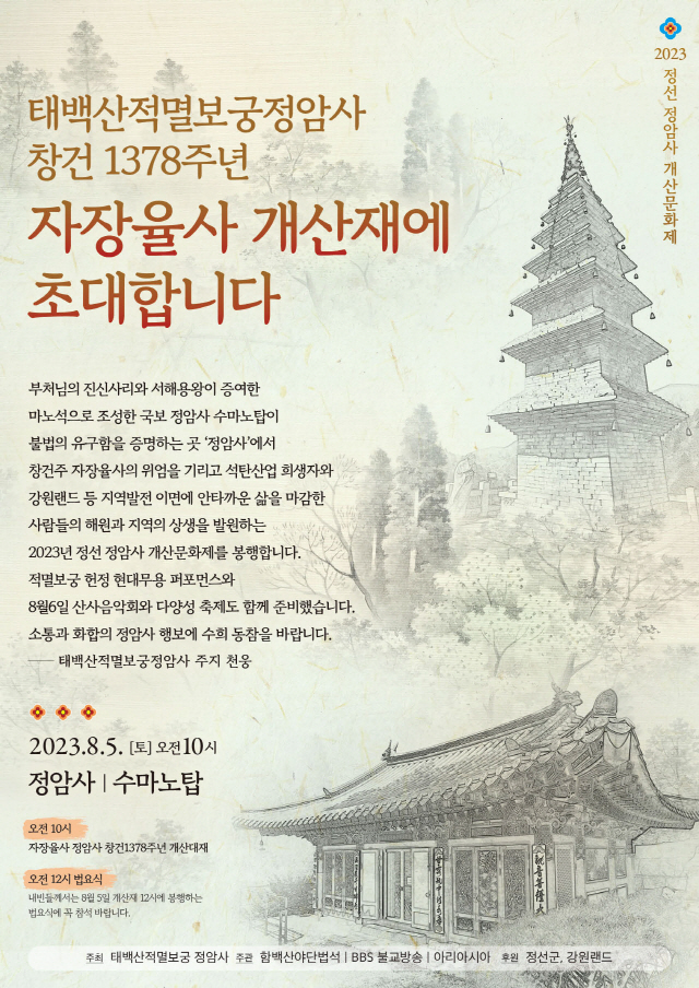 2023 정선 정암사 개산문화제 봉행 페이지 정보 작성자 정암사 작성일23-07-18 12:59 조회6,285회 댓글0건 본문 . 댓글목록 등록된 댓글이 없습니다. 이전글 다음글 목록