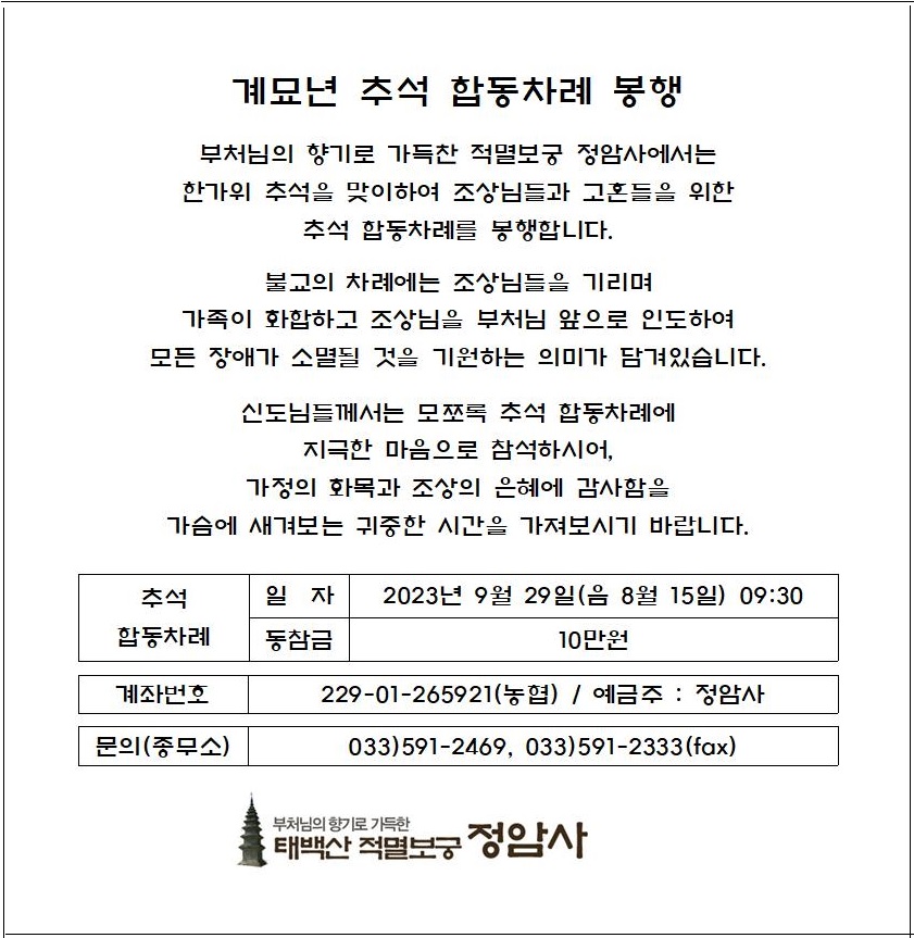 계묘년 추석 합동차례 봉행 > 공지사항