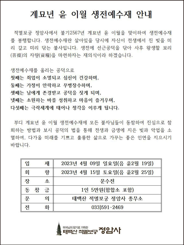 계묘년 윤 이월 생전예수재 봉행 > 공지사항