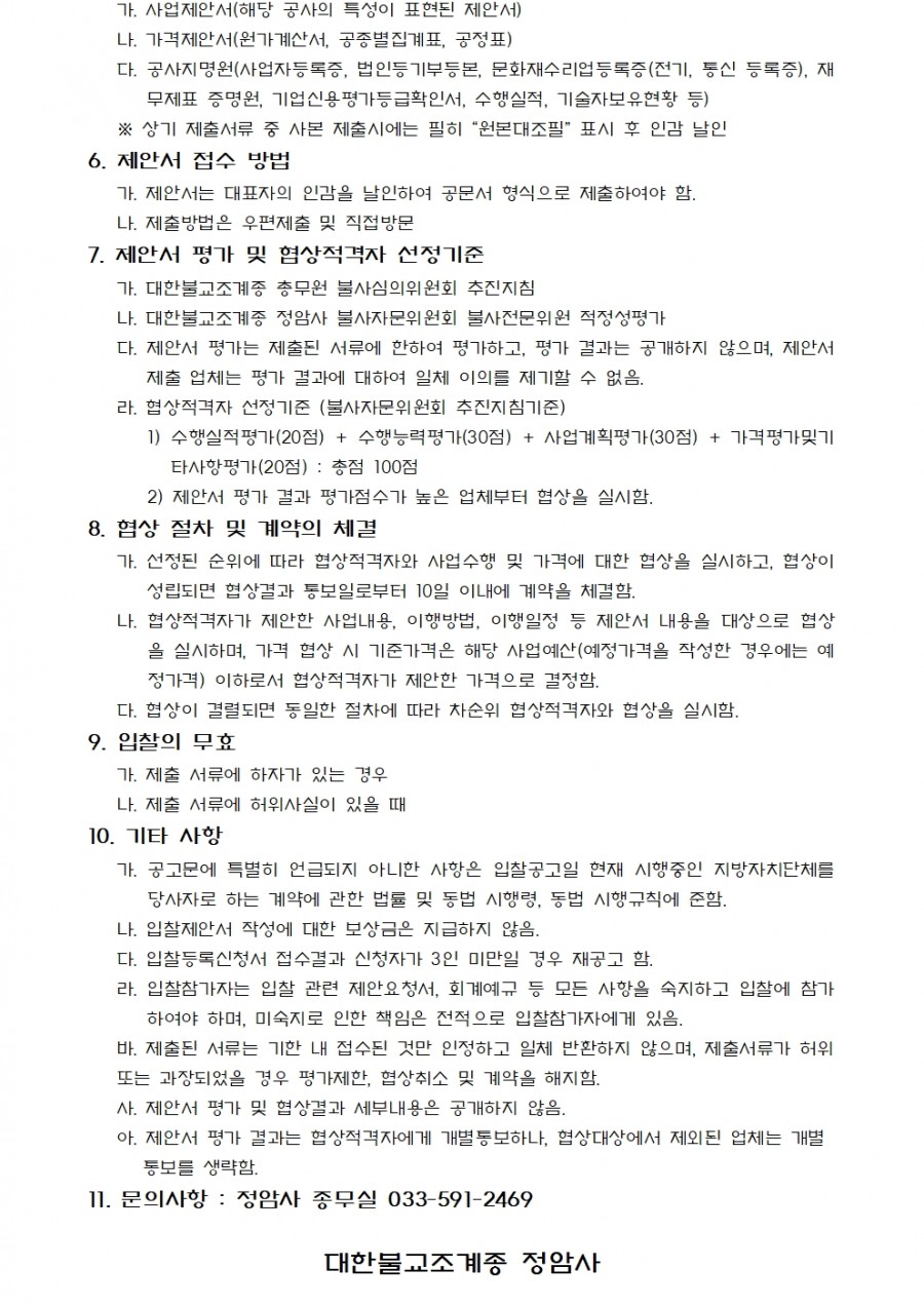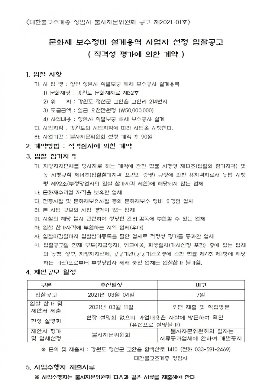 문화재 보수정비 설계용역 사업자 선정 입찰공고 페이지 정보 작성자 정암사 작성일21-03-05 19:47 조회11,506회 댓글0건 본문 . 댓글목록 등록된 댓글이 없습니다. 이전글 다음글 목록
