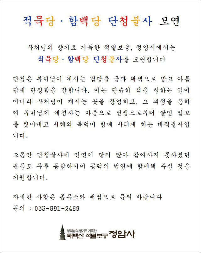 적묵당ㆍ함백당 단청불사 모연