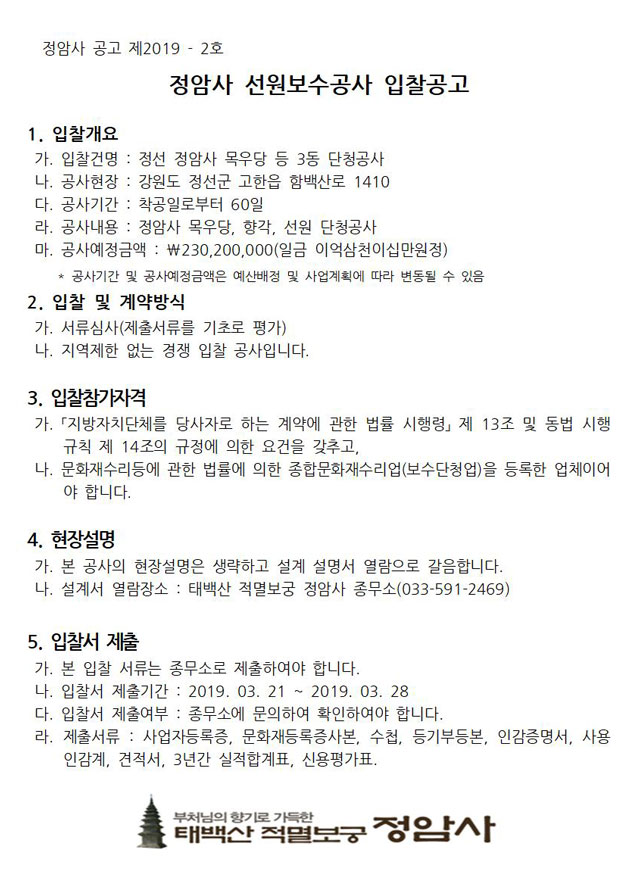 정암사 선원보수공사 입찰공고 > 공지사항