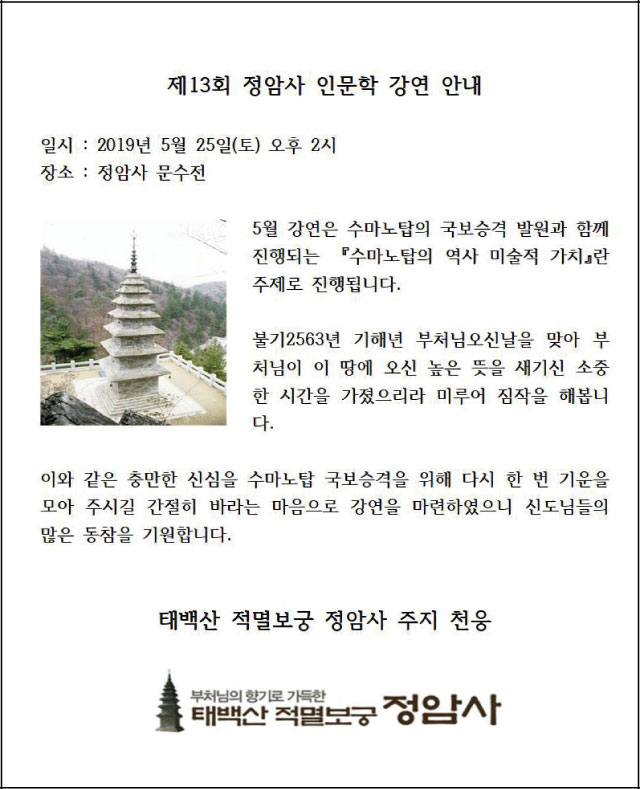 『제13회 정암사 인문학 강연』_5월 25일(토) 오후 2시 페이지 정보 작성자 정암사 작성일19-05-11 13:31 조회9,523회 댓글0건 본문 . 댓글목록 등록된 댓글이 없습니다. 이전글 다음글 목록