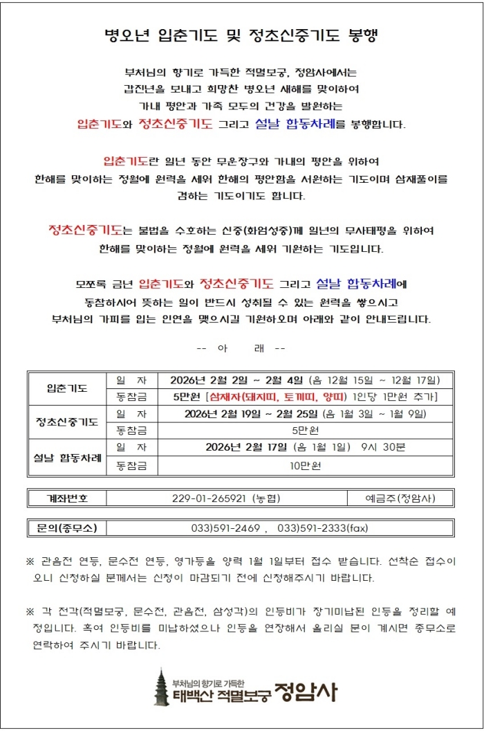 병오년 입춘기도 및 정초신중기도 봉행 > 공지사항