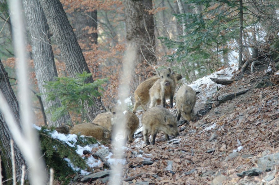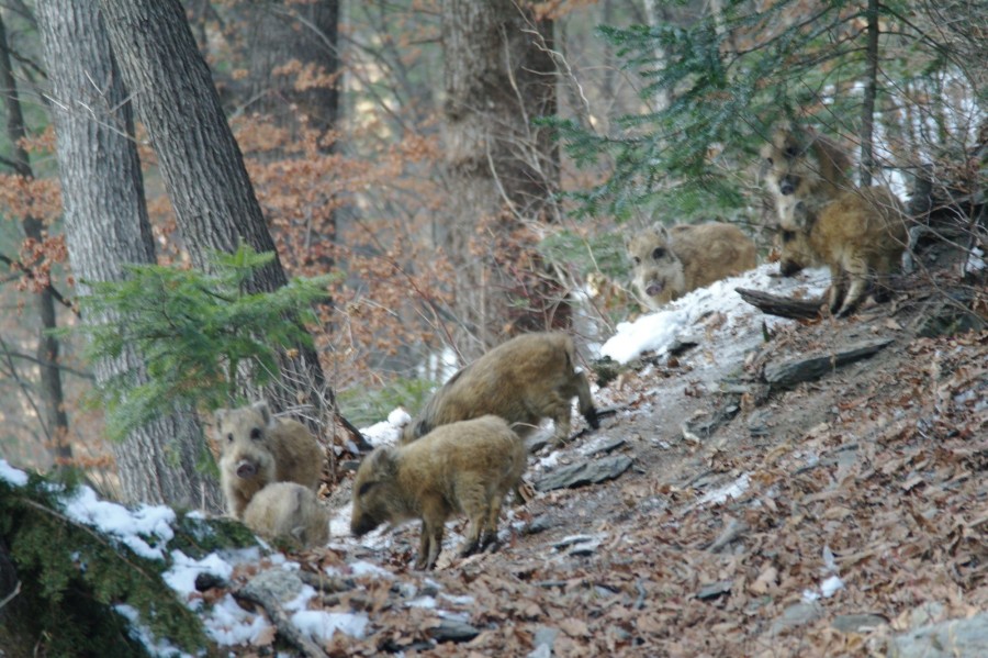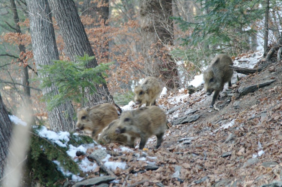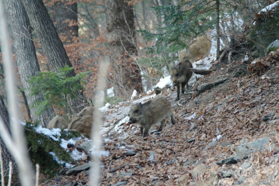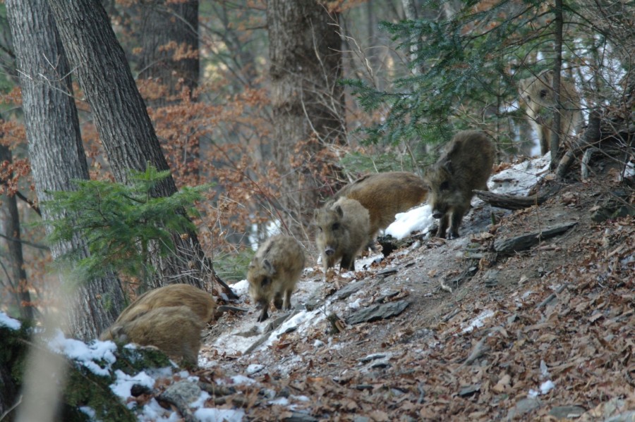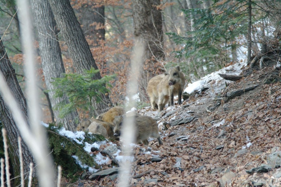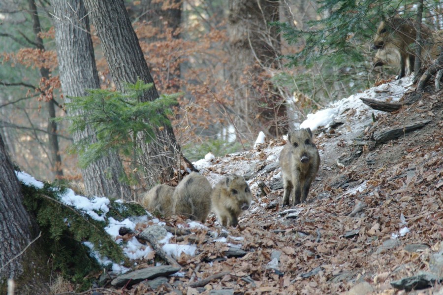 정암사 경내를 제집처럼 드나들던 1쌍의 멧돼지들이